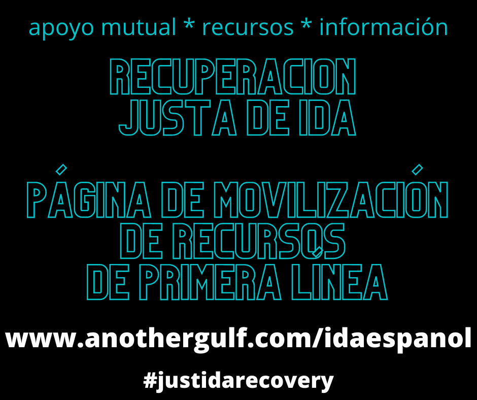 Distribuiremos las donaciones directamente a la gente indígena, negra y de color de primera línea impactada por el huracán Ida y a los grupos que actualmente no tienen capacidad para hacer donaciones en línea, así como directamente a las familias individuales impactadas por la tormenta.